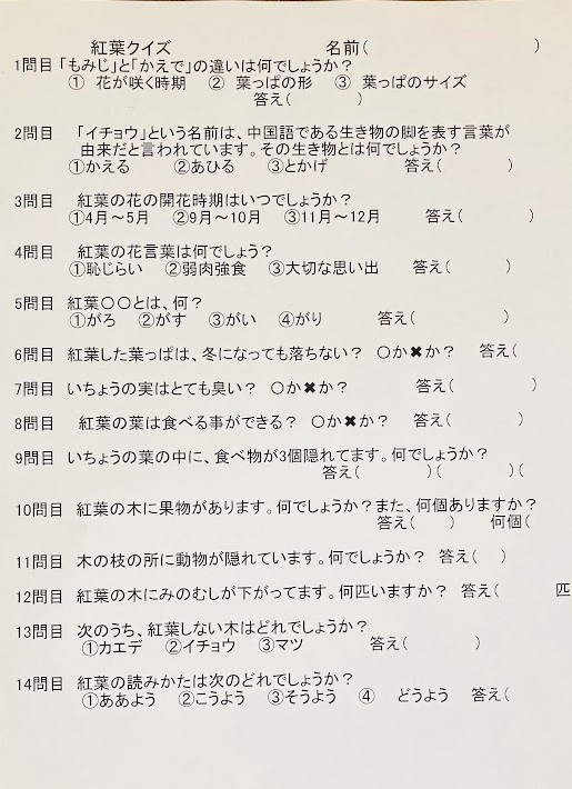 秋も深まり、当事業所では毎年恒例の“もみじクイズ”を開催しました。