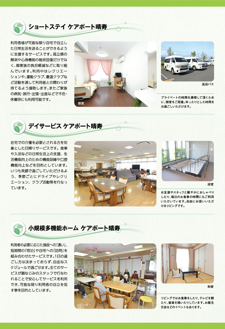ショートステイ ケアポート晴寿 リーフレット