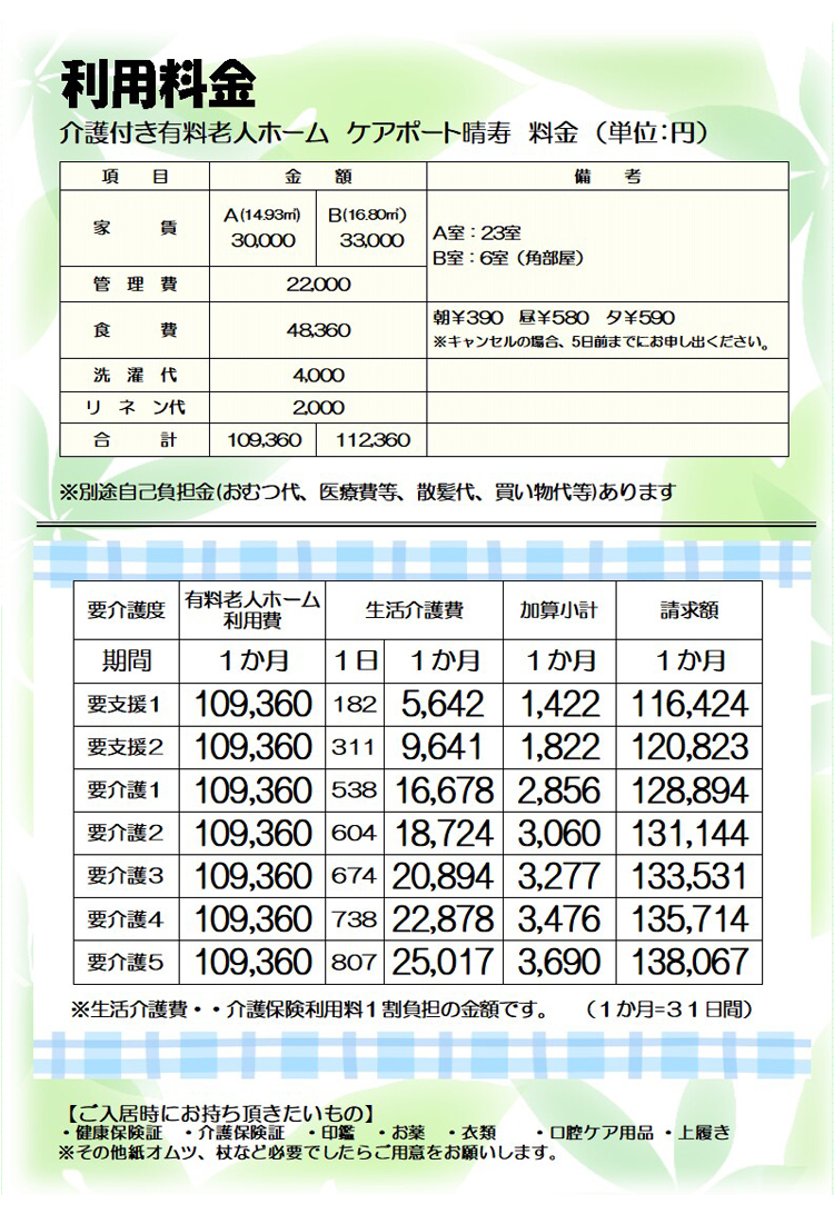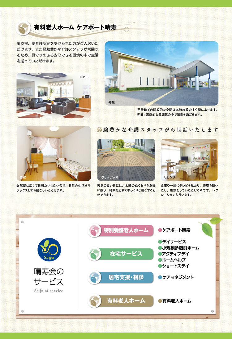 介護付き有料老人ホーム ケアポート晴寿 リーフレット