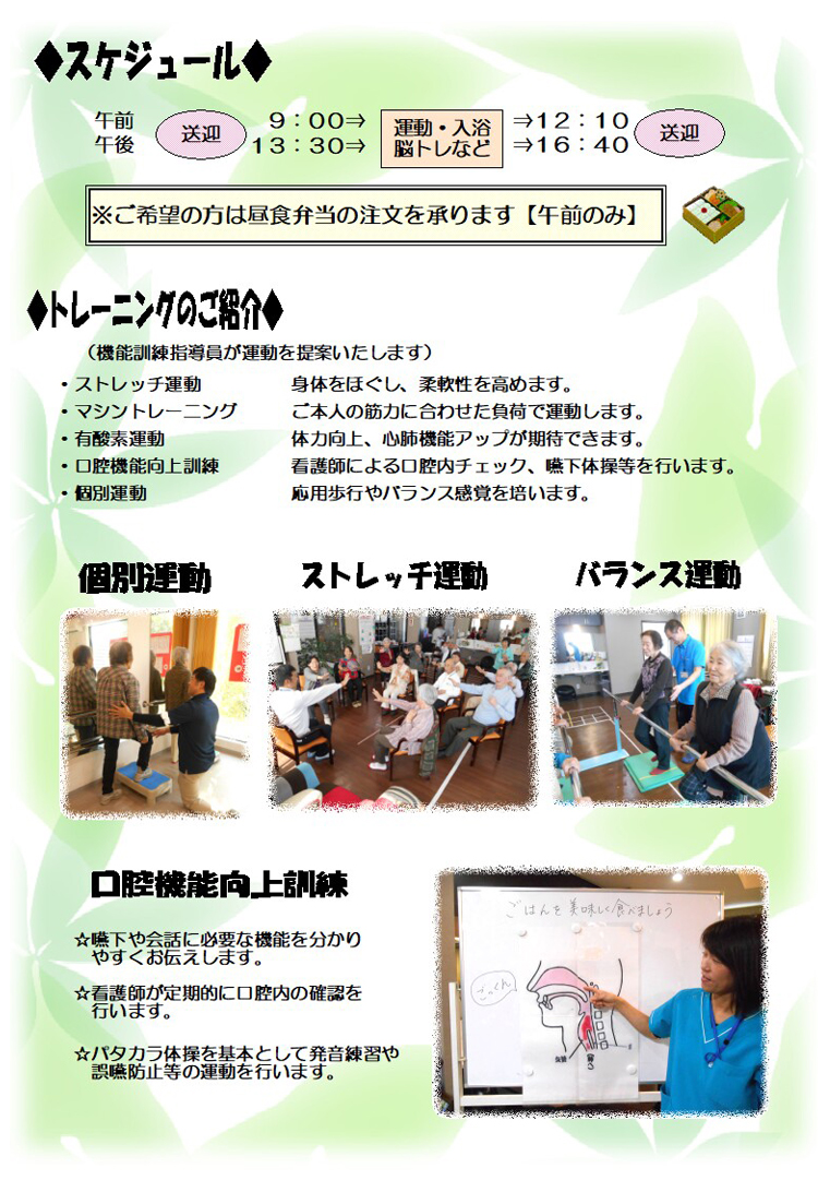 デイサービス ケアポート晴寿 リーフレット