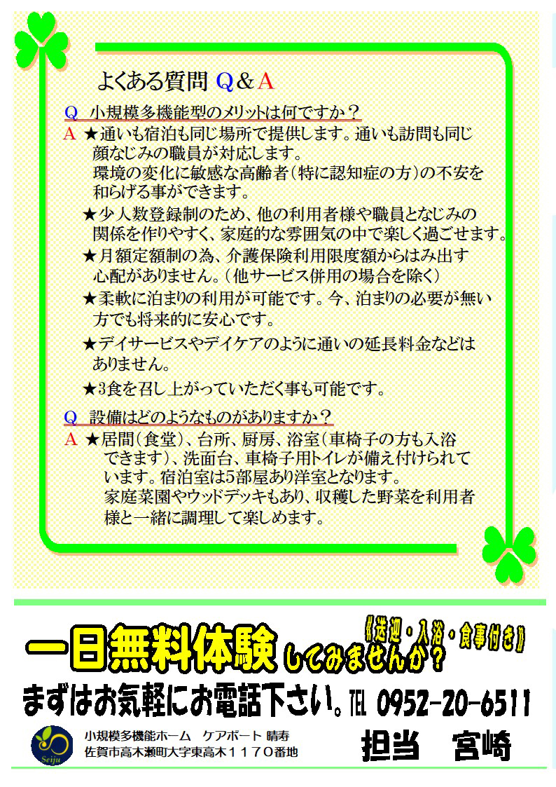 小規模多機能ホーム ケアポート晴寿 リーフレット
